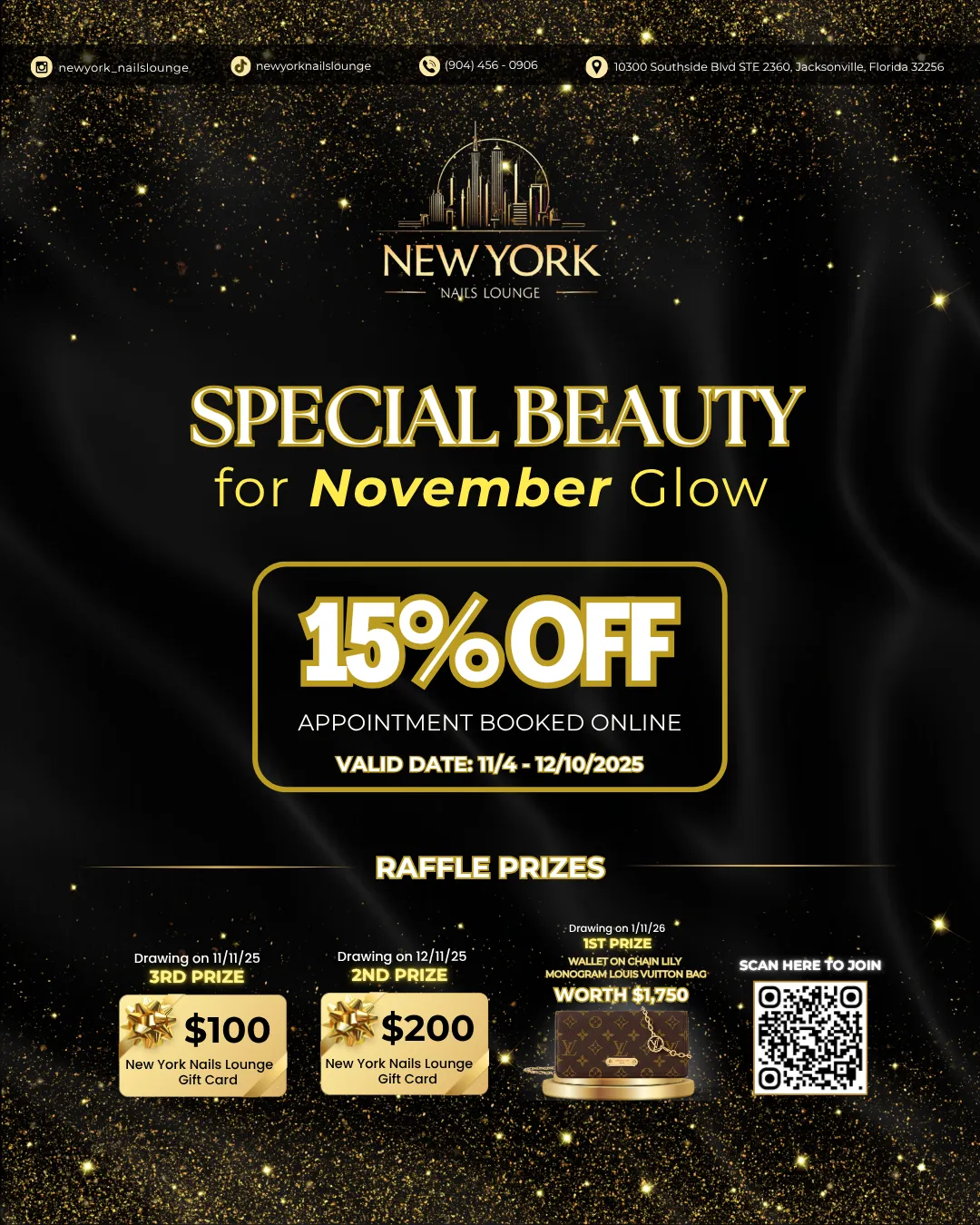 π₯ 3rd Prize: $100 New York Nails Lounge Gift Card (draw on 11/11)